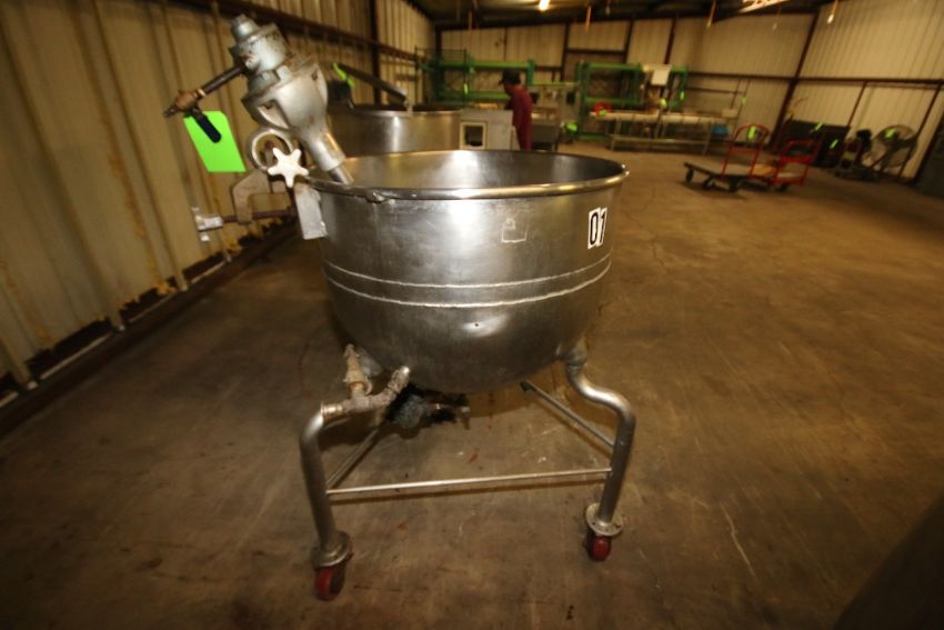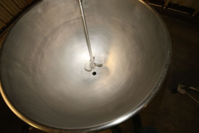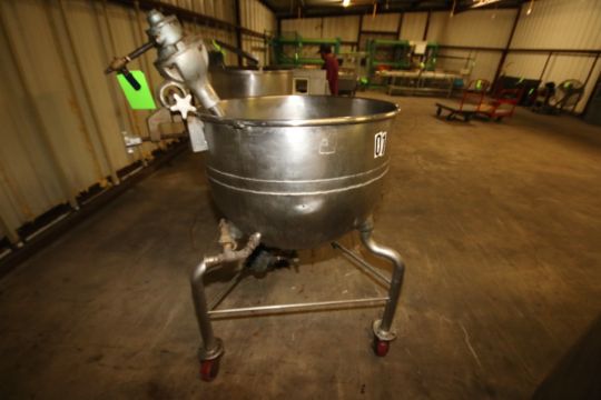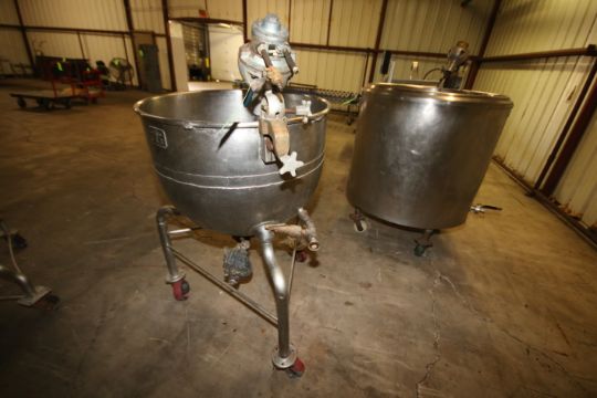 John Lentz Aprox. 50 Gal. Jacketed S/S Kettle, 80 Test psi & 40 psi, Mounted on Casters with Lightnin' Pneumatic Mixer (Located in San Antonio)**LULU**