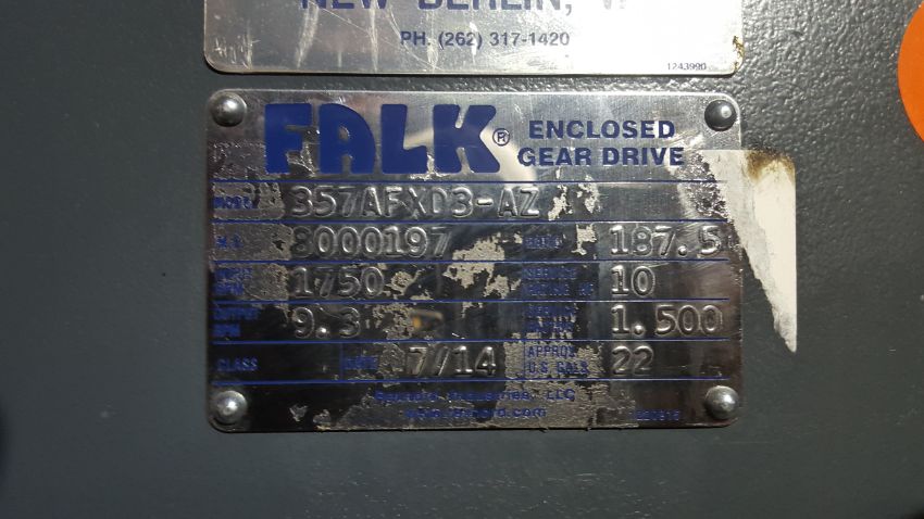 New Enclosed Falk Gear Drive with Motor, Model 357AFXD3-AZ, S/N 3000197, 1,780 RPM(Located in Illinois)