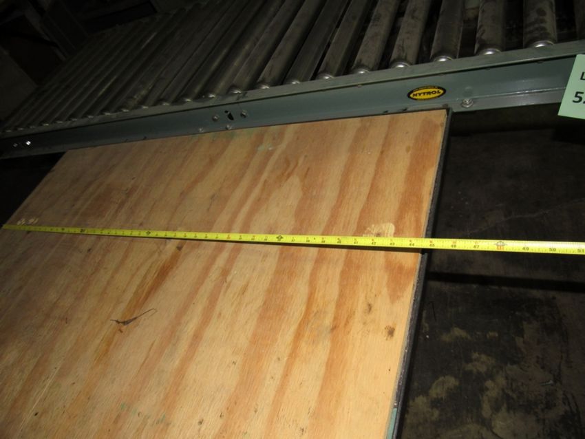 Packing Table with 10ft Hydrol Roller conveyor and two work surface with plywood tops on casters, 28" wide conveyors, work surface about 4ft wide for one and 22" wide for the 2nd one (Located in Iowa)**EUSA**