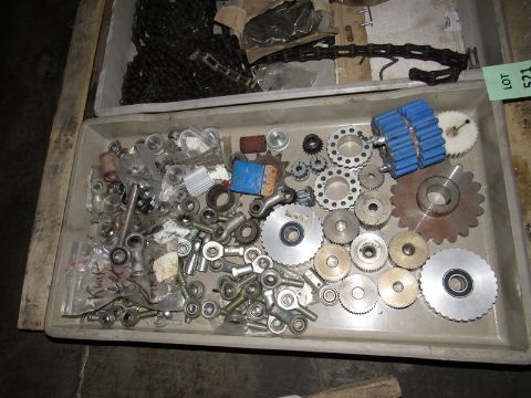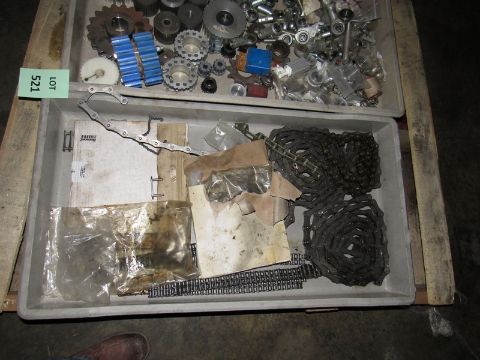 One lot two trays of misc. gears, chains, and threaded ball joint ends (Located in Iowa)**EUSA**