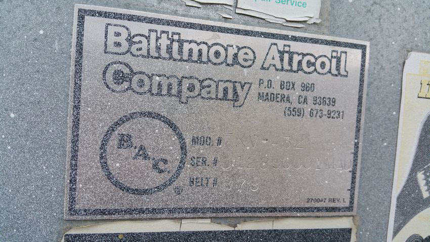 BAC 2 - Fan Cooling Tower, Model FXV - 432, S/N U12890001MAD, Includes Circulation Pump & Related Valves, (Note: Installed on Upper Mezzanine) (Located in San Antonio)**LULU**