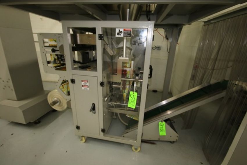 2014 Automatic Vertical Packaging Machine, M/N HS420, S/N 20130170, 10-60 Bags per Min., with 10 S/S Buckets, with PLC Control and LCD Operator Touch Screen, Additional Forming Tube Included, Mounted on Portable Frame***Located in NY***