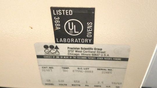 Precision Mechanical Convection Incubator, Double Door, Model 6M, S/N 22AR5, Approx. Chamber inside 36 1/2"x 27"