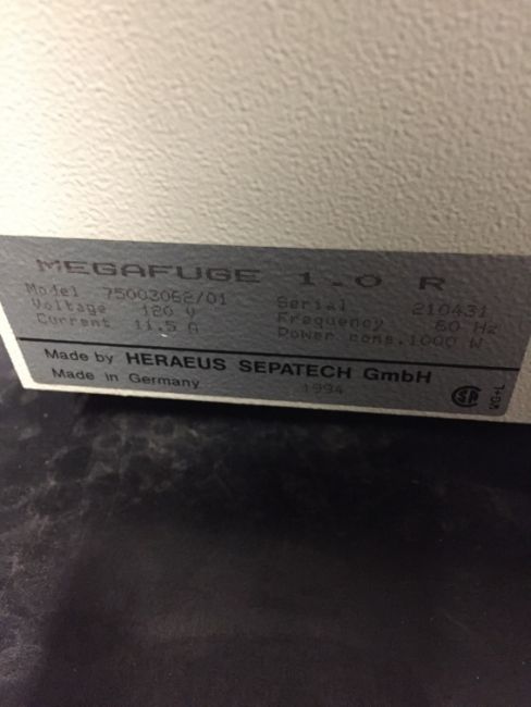 Baxter Scientific Products Megafuge 1.0R, Model 75003062/01, S/N 210431
