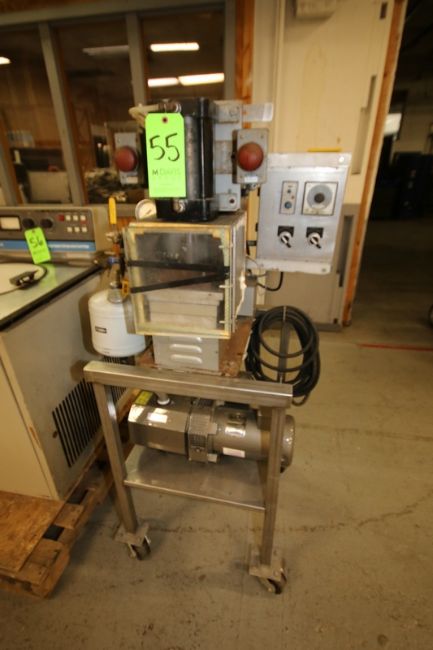 Vertrod Corp. Thermal Impulse Heat Sealing Machinery Vacuum Testing Station, Model 4-1/2EPF, S/N V-16327 with Leybold Sogevac 2 hp Vacuum Pump, 1725 RPM Motor, 230/460 V, 3 Phase, Aprox. 9-1/2" Deep x 9" W x 9-1/2" H Press Chamber Area with Controls Mounted on Portable Stand