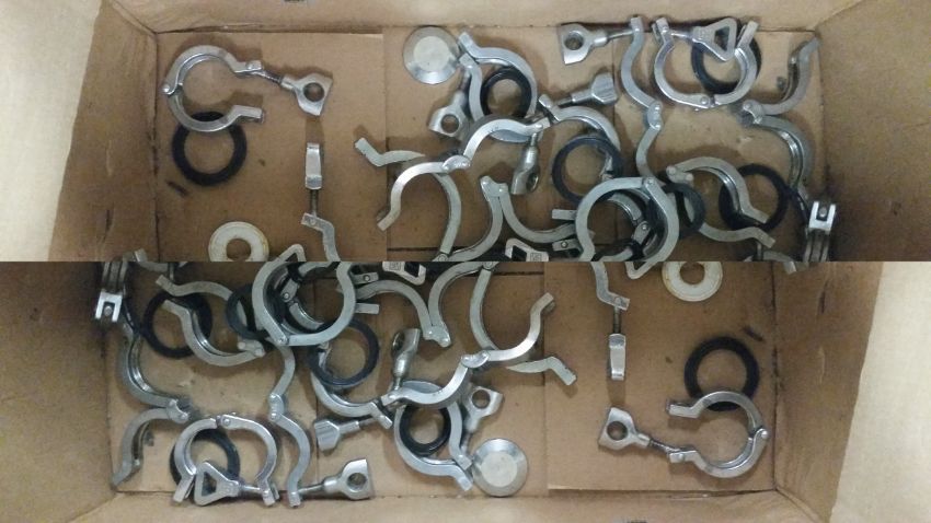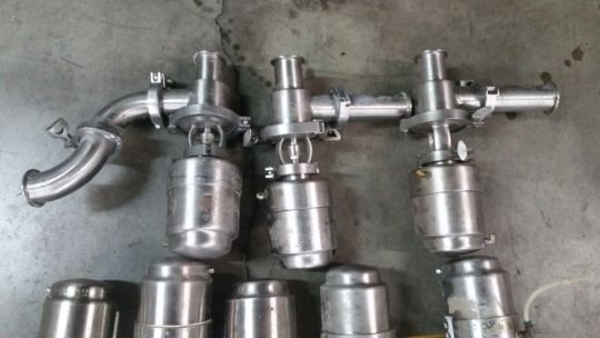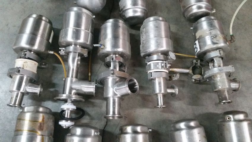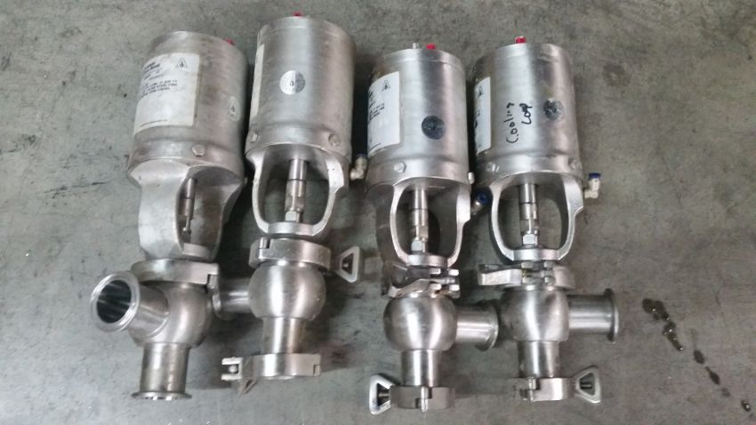 Automatic 2 -way and 3-way Air Valves(4) 2-way Air Valves 1 3/8 inch, (14) 2-way Air Valves - Range from 3/4 inch to 1 7/8 inch, (7) 3-way Air Valves 1 7/8 inch, Miscellaneous Piping and Tri-clover Clamps