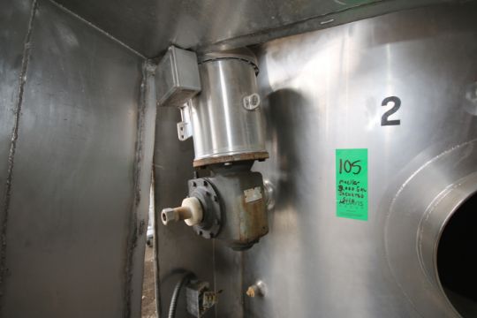 Mueller 3,000 Gal. S/S Silo, Model SVW, S/N D-20021-2 with Horizontal 3-Prop Agitator, Alcove, Painted Exterior, Jacketed, Dual Sprayball, Front Man Door, 150 psi, Silo Interior Dimensions Aprox. 118" W x 84" H (Located in Mississippi)***PPHARM***