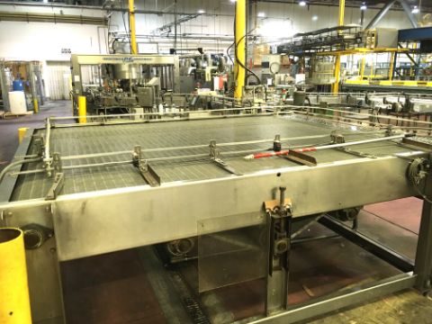 Alliance 8x8 Bi-directional Accumulation Table8 feet by 8 feet, Stainless Steel Construction with Plastic Intralox Belting, Last running .5L, 20oz, 24oz, 1L, 1.89L, 3.78L PET Bottles, Good Condition, Last used in service December 15th, 2016 (Located in NC) ***FBEV***