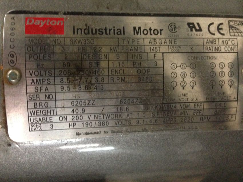 Dayton Industrial Motor 2.2HP Model: 3KW33G S/N: HS B2078001016 (Located in NC) ***FBEV***