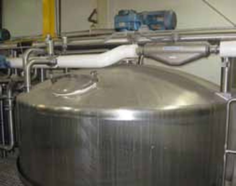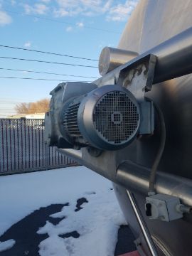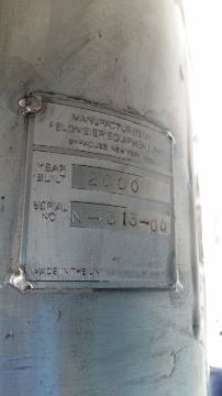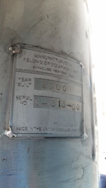 Feldmeier 6,000 Gallon Vertical Single Wall Batch Mixing Tank S/N: N-313-00Stainless Steel Construction, #4 Finish internal, CIP Spray ball, Dome Top, Dish Bottom, Center Discharge on Bottom, Several Inlets at top, Vertical Tank with Top Mounted Agitator, Last used as a blend tank in large juice facility, Mounted on SS Legs, Top Manhole, Made in 2000, 123in Overall Diameter x 207in Overall Height (Located in NC) ***FBEV***
