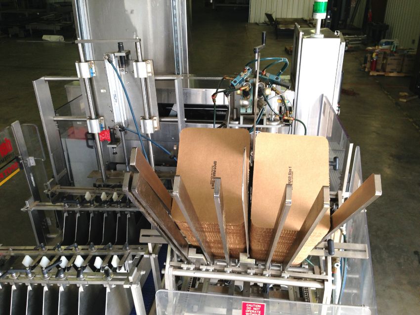 Delkor Spotpak Top Load Case Packer Model: SP-RH-SL S/N: SP-2059Robust gantry style pick-and-place robot assembles Spot-Pak shippers at production rates up to 150 primary package containers per minute. Designed for safe and reliable performance in a washdown environment. Last setup for Yogurt type tubs onto a flat board tray, Loads product from top using suction cups, all stainless steel construction, Allen Bradley Micrologix PLC, Good Condition (Located in NC) ***FBEV***