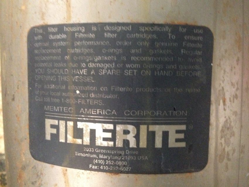Filterite Water Polishers with Filters Model: 910717-000 S/N: LG Pressure 150 PSIG at 200 Degrees, Diameter 8in x Length 36in, 2.5in IN 2.5in OUT (Located in NC) ***FBEV***