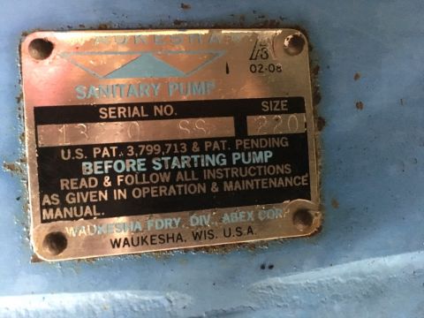Waukesha Positive Displacement Pump Model: 220 Serial: 13220 SS 4.5in IN 4.5in OUTMounted to Stainless Steel Plate, Includes Leeson Speedmaster Adjustable Speed AC Motor Control, Side Mounted Motor 10 HP 575 Volt 60Hz 3 Phase (Located in NC) ***FBEV***
