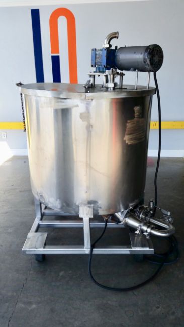 Batching Blender 200 Gallon TankStainless Steel, Single Agitation, Baldor 2HP 208-230/460 Volt 60 Hz 3 Phase, Mounted to a Stainless Steel Frame, Includes Tri-Clover Centrifugal Pump Model: C216MF18T-S Serial: P0874 (Located in NC) ***FBEV***