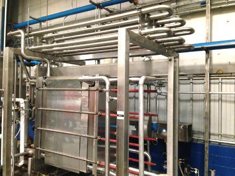 Barry-Wehmiller Flash Pasteurization Skid Serial 61180 Year: 2011Setup for Juice or Lightly Carbonated Cider, 100 Gallons/Minute, Incoming Product Temperature 65ºF minimum – incoming product temperature max is 85ºF, Target Hold Time 15 seconds, 460 Volts, 3PH, 60HZ, Water 40 PSIG, Air 80 PSIG, Steam PSIG, Includes APV Multi-Section Plate Heat Exchanger – Model R5 R-15, 150 PSIG at 293ºF Max Temperature, Holding Tube for Pasteurization, Control and Steam Valves, Stainless Steel Construction, Fristam High Pressure Pumps, Allen Bradley Control Logix PLC with PowerFlex Frequency Drives and Operator Panelview 1000 Touchscreen, Optimum Filter Stainless Steel Flash Buffer Tank at 250ºF, Used 6 months before change in production requirements (Located in NC) ***FBEV***