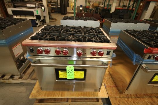 { Choice of lots: 48, 49, 50, 51, 52, 53 } New Wolf 36" Professional Natural Gas Range Oven/6-Burner, Model R366, S/N 17225518 with S/S Finish