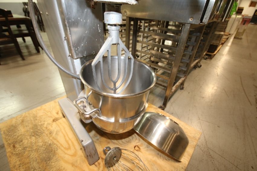 Hobart 3-Speed 40 Qt. Commercial Mixer, Model 0340, S/N 31-1182-980, 1-1/2 hp, 1725 RPM, 208 V, 3 Phase with S/S Mixing Bowl, S/S Guard, Flat Beater and Wire Whip Attachments
