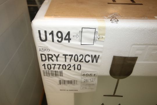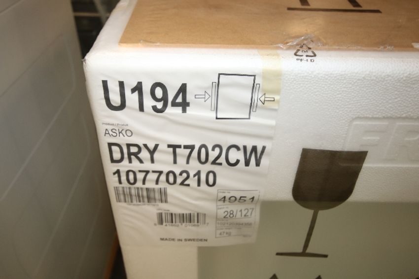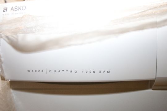 { Choice of lots: 40 } Asko Washer, Model W6022, Quattro 1200 RPM (Open Box) and New Asko Sensor Controlled Condenser Dryer, Model T702CW10770210, S/N 102120394356 (White) (NOTE: Washer Has A Crack On Top Molding)