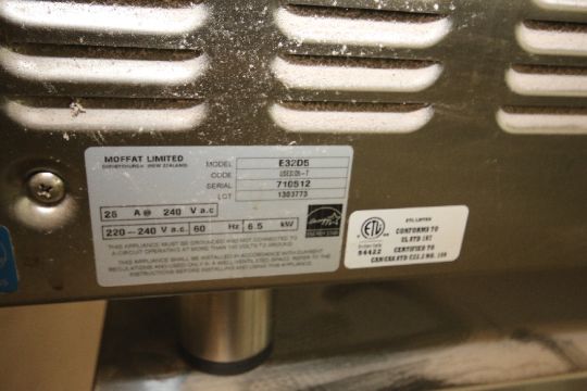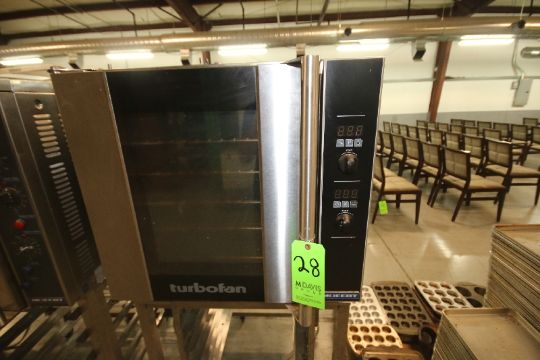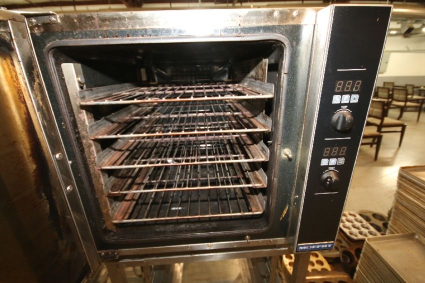 { Choice of lots: 28 } Moffat Limited 4-Shelf Commercial Electric Turbofan Portable Convection Oven, Model E32D5, S/N 710512, 208 Vac, Mounted on Tray Rack Stand