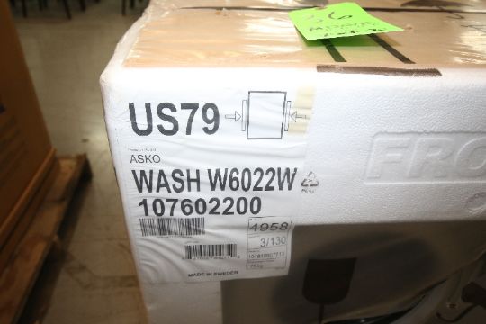 { Choice of lots: 36 } New Asko Washer, Model W6022W107602200, S/N 101810907713 and New Asko Sensor Controlled Condenser Dryer, Model T702CW10770210, S/N 102120394355 (White)