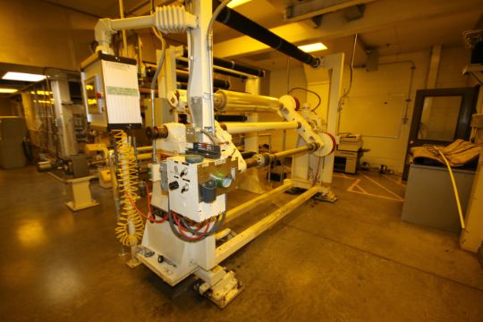 Black Clawson Braked Winder/Unwinder Splicing Station and #1 Pull Roll Web Path, Model 20, S/N 307N283747, Currently Operating with 52” W Rolls, Will Extend to 66” W includes Drives, Winder includes Hydraulic Operated Side Shift with (2) Fife Hydraulic Systems, Controls and Allen Bradley PanelView Plus 1000 Display