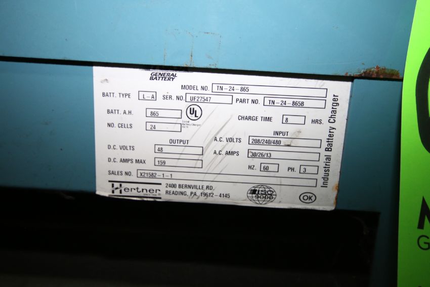 Forklift Battery Chargers, Includes (1) Hertner Auto 1000 48 Volt Charger, Model TN-24-865, S/N UF27547 and (1) 24 Volt Charger
