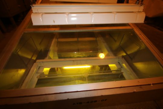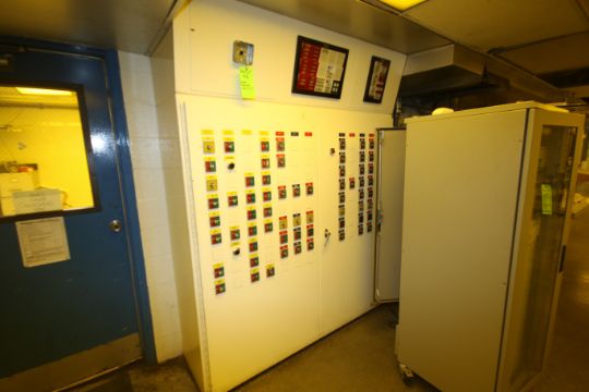 { Group of lots: 42, 45, 47, 60, 61, 62, 65, 66, 67, 68, 69, 70, 71, 72, 73, 73A, 73B, 75, 77, 79, 80, 81, 82, 83, 84, 85, 86, 97, 98, 99, 100, 101, 102, 103, 104, 105, 106, 107, 108, 109, 110, 111, 112, 113, 118, 119, 121, 134, 135, 136, 149, 151, 152, 164, 165, 200, 201, 202, 203, 212, 213, 214, 215, 216, 217, 218, 219, 220, 221, 222, 223, 246, 247, 248, 256, 257, 258, 260, 261, 263B, 267, 268, 270A, 271, 272, 273, 274, 275, 276, 277, 278, 279, 280, 281, 282, 283, 285, 286, 287, 288, 289, 290, 291, 292, 293, 294, 295, 296, 297, 301, 302, 303, 304, 307, 308, 309, 309A, 309B, 310, 310A, 314, 315, 316, 317, 319, 327, 328, 329, 344, 352, 355, 356, 357, 358, 361, 363A, 363B, 364, 443, 444, 445, 461, 462, 463, 464, 465, 466, 467, 468, 469, 610, 637, 638, 819, 819A, 820, 823, 824, 825, 826, 827, 828, 830, 831, 832, 833, 834, 835, 836, 837, 838, 839, 840, 841, 842, 843, 846, 846B, 847, 848, 849, 851, 856, 857, 858, 859, 861, 862, 863, 864, 865, 866, 870, 871, 873, 874, 875, 876, 877 } Zink / Black Clawson Aprox. 200 ft. L UV Curing Coating Line Inclined Tunnel Dryer, Order #157-83170-84, S/N 1115R-100256, Metal Constructed, Aprox. 66” W, 8-Section Unit includes (8) DC Drive Motors with Allen Bradley 1336 VFD’s, Idlers, AEC Temperature Control Systems, Automation Inc. Exhaust Controls includes (2) 2-Door Control Panels (Located on 2nd Floor) (NOTE: Wire and Condulet Not Included Outside Panel)