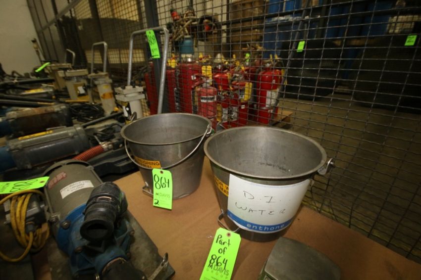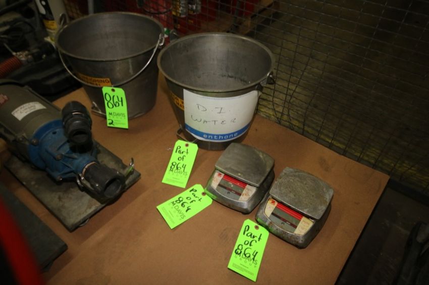 { Group of lots: 42, 45, 47, 60, 61, 62, 65, 66, 67, 68, 69, 70, 71, 72, 73, 73A, 73B, 75, 77, 79, 80, 81, 82, 83, 84, 85, 86, 97, 98, 99, 100, 101, 102, 103, 104, 105, 106, 107, 108, 109, 110, 111, 112, 113, 118, 119, 121, 134, 135, 136, 149, 151, 152, 164, 165, 200, 201, 202, 203, 212, 213, 214, 215, 216, 217, 218, 219, 220, 221, 222, 223, 246, 247, 248, 256, 257, 258, 260, 261, 263B, 267, 268, 270A, 271, 272, 273, 274, 275, 276, 277, 278, 279, 280, 281, 282, 283, 285, 286, 287, 288, 289, 290, 291, 292, 293, 294, 295, 296, 297, 301, 302, 303, 304, 307, 308, 309, 309A, 309B, 310, 310A, 314, 315, 316, 317, 319, 327, 328, 329, 344, 352, 355, 356, 357, 358, 361, 363A, 363B, 364, 443, 444, 445, 461, 462, 463, 464, 465, 466, 467, 468, 469, 610, 637, 638, 819, 819A, 820, 823, 824, 825, 826, 827, 828, 830, 831, 832, 833, 834, 835, 836, 837, 838, 839, 840, 841, 842, 843, 846, 846B, 847, 848, 849, 851, 856, 857, 858, 859, 861, 862, 863, 864, 865, 866, 870, 871, 873, 874, 875, 876, 877 } (2) S/S Buckets with (2) Valor 3000 Digital Scales, LOCATED IN BRIDGEVIEW, IL