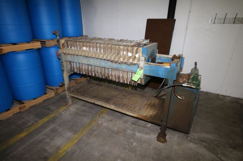 { Group of lots: 42, 45, 47, 60, 61, 62, 65, 66, 67, 68, 69, 70, 71, 72, 73, 73A, 73B, 75, 77, 79, 80, 81, 82, 83, 84, 85, 86, 97, 98, 99, 100, 101, 102, 103, 104, 105, 106, 107, 108, 109, 110, 111, 112, 113, 118, 119, 121, 134, 135, 136, 149, 151, 152, 164, 165, 200, 201, 202, 203, 212, 213, 214, 215, 216, 217, 218, 219, 220, 221, 222, 223, 246, 247, 248, 256, 257, 258, 260, 261, 263B, 267, 268, 270A, 271, 272, 273, 274, 275, 276, 277, 278, 279, 280, 281, 282, 283, 285, 286, 287, 288, 289, 290, 291, 292, 293, 294, 295, 296, 297, 301, 302, 303, 304, 307, 308, 309, 309A, 309B, 310, 310A, 314, 315, 316, 317, 319, 327, 328, 329, 344, 352, 355, 356, 357, 358, 361, 363A, 363B, 364, 443, 444, 445, 461, 462, 463, 464, 465, 466, 467, 468, 469, 610, 637, 638, 819, 819A, 820, 823, 824, 825, 826, 827, 828, 830, 831, 832, 833, 834, 835, 836, 837, 838, 839, 840, 841, 842, 843, 846, 846B, 847, 848, 849, 851, 856, 857, 858, 859, 861, 862, 863, 864, 865, 866, 870, 871, 873, 874, 875, 876, 877 } Waterlink Waste Water Treatment Press, S/N F30124, with (21) Waterlink Filters, and Simpleflex On Board Hydraulic Pump, Mounted on Frame, LOCATED IN BRIDGEVIEW, IL
