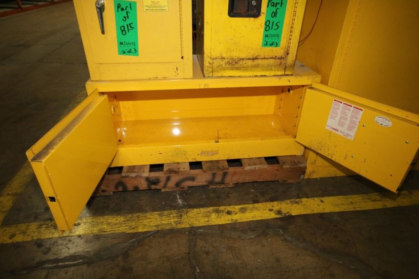 { Choice of lots: 813, 814, 815 (P) } Flammable Storage Cabinets, Manuf. By JustRite, Eagle, Securall Cabinets, (2) 4 Gal., (1) 12 Gal., Dims. (2) 18" L x 18" W x 22" H, (1) 43" L x 18" W x 18" H, LOCATED IN BRIDGEVIEW, IL