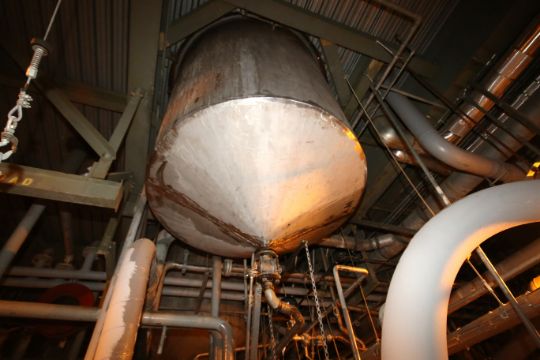 { Choice of lots: 208, 209 } Aprox. 1,200 Gal. Cone-Bottom S/S Weigh Tank with Thru Floor Design, Chemineer 1/.75 hp Agitator, 1725/1475 RPM, 230/460 V, 3 Phase Single Triple Blade Prop, Mounted on Load Cells, with Fairbanks 3052 Digital Read-Out, Tank Valves, Safety Screen, (Tank Dimensions Aprox. 6 ft. H x 73” W, includes Bottom Durco Ball Valve (Unit WT42) (NOTE: used in Cl. I Div. 1 Gp. D hazardous areas), (Located 4th Floor Polymers Building)
