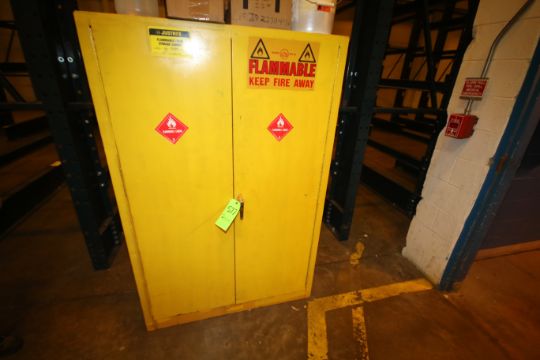 Justrite 45 Gal. Flammable Storage Cabinets and Assorted Safety Suits and Caution Tape (Located Near Mix Room)