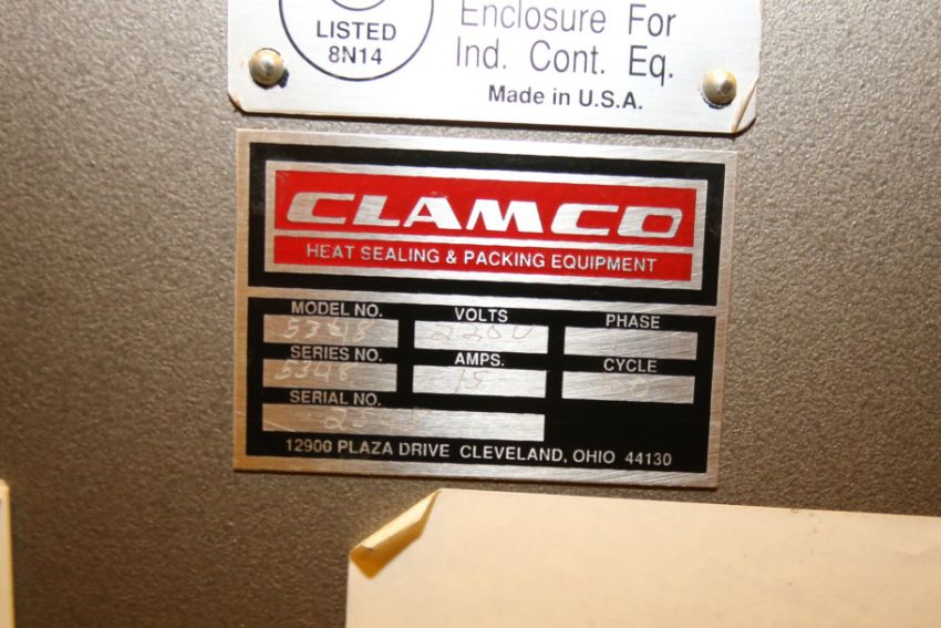 Clamco Heavy Duty L-Seal Packaging Machine, Model 5348, S/N 2545 with Aprox. 48” L x 26” W Sealing Area, 34” Tubing, 220 V, Single Phase
