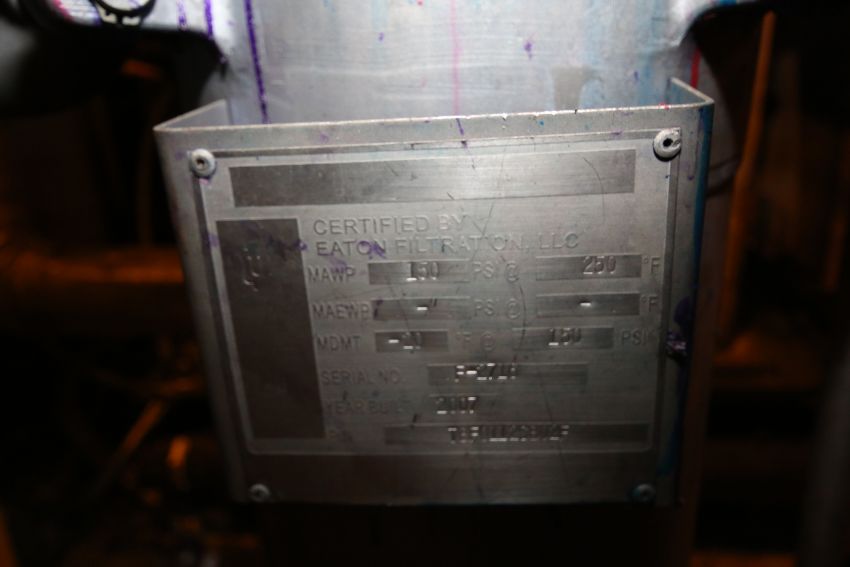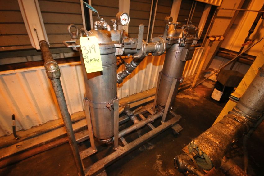 { Group of lots: 42, 45, 47, 60, 61, 62, 65, 66, 67, 68, 69, 70, 71, 72, 73, 73A, 73B, 75, 77, 79, 80, 81, 82, 83, 84, 85, 86, 97, 98, 99, 100, 101, 102, 103, 104, 105, 106, 107, 108, 109, 110, 111, 112, 113, 118, 119, 121, 134, 135, 136, 149, 151, 152, 164, 165, 200, 201, 202, 203, 212, 213, 214, 215, 216, 217, 218, 219, 220, 221, 222, 223, 246, 247, 248, 256, 257, 258, 260, 261, 263B, 267, 268, 270A, 271, 272, 273, 274, 275, 276, 277, 278, 279, 280, 281, 282, 283, 285, 286, 287, 288, 289, 290, 291, 292, 293, 294, 295, 296, 297, 301, 302, 303, 304, 307, 308, 309, 309A, 309B, 310, 310A, 314, 315, 316, 317, 319, 327, 328, 329, 344, 352, 355, 356, 357, 358, 361, 363A, 363B, 364, 443, 444, 445, 461, 462, 463, 464, 465, 466, 467, 468, 469, 610, 637, 638, 819, 819A, 820, 823, 824, 825, 826, 827, 828, 830, 831, 832, 833, 834, 835, 836, 837, 838, 839, 840, 841, 842, 843, 846, 846B, 847, 848, 849, 851, 856, 857, 858, 859, 861, 862, 863, 864, 865, 866, 870, 871, 873, 874, 875, 876, 877 } 2007 Eaton Filtration Portable S/S Inline Filters, S/N 7-2484 and S/N F-2716, MAWP 150 psi @200 Degree F, Filter Dimensions Aprox. 30" H x 9" W (Located R12 Bulk Filling Room)