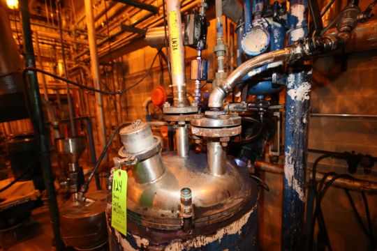 Aprox. 20 Gal. Dome-Top Dome-Bottom S/S Powder Blend System with Aprox. 2 hp Mixer/Agitator and Related Valves (Dimensions Aprox. 20” H x 20” W), (NOTE: used in Cl. I Div. 1 Gp. D hazardous areas)