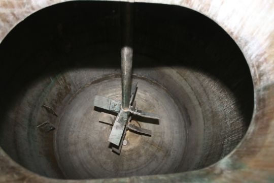 Buehler Aprox. 500 Gal. Dome-Top Reactor Tank, National Board #1184 with Thru Floor Design, Dish Bottom, Jacket, Chemineer 5 hp High Shear Agitator, Dual Prop 4-Blades Each, Tank Valves, Bolted Top Man Door including Durco Top Mounted S/S Ball Valve (Tank Dimensions Aprox. 60” H x 54” W (Unit R31) (NOTE: used in Cl. I Div. 1 Gp. D hazardous areas), (Located 3rd Floor Polymers Building)