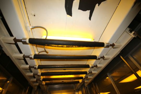 { Group of lots: 42, 45, 47, 60, 61, 62, 65, 66, 67, 68, 69, 70, 71, 72, 73, 73A, 73B, 75, 77, 79, 80, 81, 82, 83, 84, 85, 86, 97, 98, 99, 100, 101, 102, 103, 104, 105, 106, 107, 108, 109, 110, 111, 112, 113, 118, 119, 121, 134, 135, 136, 149, 151, 152, 164, 165, 200, 201, 202, 203, 212, 213, 214, 215, 216, 217, 218, 219, 220, 221, 222, 223, 246, 247, 248, 256, 257, 258, 260, 261, 263B, 267, 268, 270A, 271, 272, 273, 274, 275, 276, 277, 278, 279, 280, 281, 282, 283, 285, 286, 287, 288, 289, 290, 291, 292, 293, 294, 295, 296, 297, 301, 302, 303, 304, 307, 308, 309, 309A, 309B, 310, 310A, 314, 315, 316, 317, 319, 327, 328, 329, 344, 352, 355, 356, 357, 358, 361, 363A, 363B, 364, 443, 444, 445, 461, 462, 463, 464, 465, 466, 467, 468, 469, 610, 637, 638, 819, 819A, 820, 823, 824, 825, 826, 827, 828, 830, 831, 832, 833, 834, 835, 836, 837, 838, 839, 840, 841, 842, 843, 846, 846B, 847, 848, 849, 851, 856, 857, 858, 859, 861, 862, 863, 864, 865, 866, 870, 871, 873, 874, 875, 876, 877 } “W” Aprox. 13 ft. L Accumulator with 69” W Rolls, Drive Motors, Idlers, Plexiglass Enclosure, Controls, Overall Dimensions Aprox. 9 ft. H x 8 ft. 8” ft. W (**SUBJECT TO CONFIRMATION**)