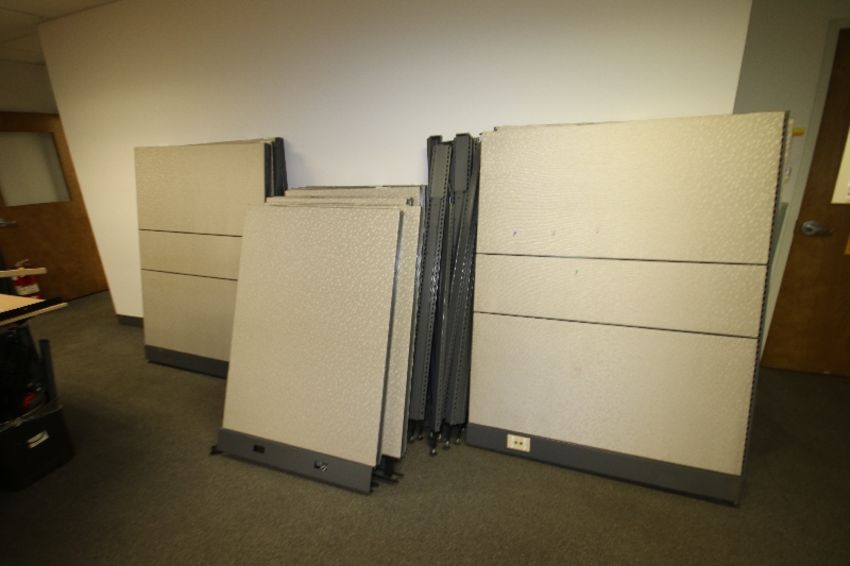 Assorted Office Cubicals, Includes Desks, Shelving, Cupboards, Computer Racking, and Other Assembles (NOTE: Dismantled and Ready for Loading)