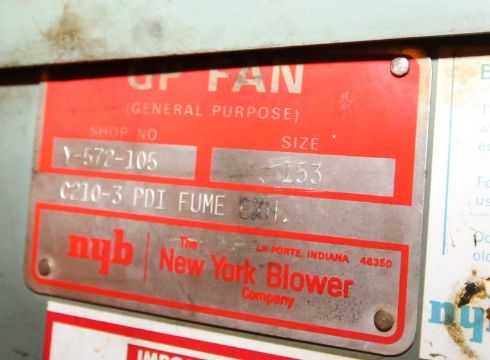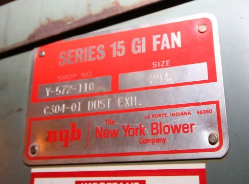 { Group of lots: 42, 45, 47, 60, 61, 62, 65, 66, 67, 68, 69, 70, 71, 72, 73, 73A, 73B, 75, 77, 79, 80, 81, 82, 83, 84, 85, 86, 97, 98, 99, 100, 101, 102, 103, 104, 105, 106, 107, 108, 109, 110, 111, 112, 113, 118, 119, 121, 134, 135, 136, 149, 151, 152, 164, 165, 200, 201, 202, 203, 212, 213, 214, 215, 216, 217, 218, 219, 220, 221, 222, 223, 246, 247, 248, 256, 257, 258, 260, 261, 263B, 267, 268, 270A, 271, 272, 273, 274, 275, 276, 277, 278, 279, 280, 281, 282, 283, 285, 286, 287, 288, 289, 290, 291, 292, 293, 294, 295, 296, 297, 301, 302, 303, 304, 307, 308, 309, 309A, 309B, 310, 310A, 314, 315, 316, 317, 319, 327, 328, 329, 344, 352, 355, 356, 357, 358, 361, 363A, 363B, 364, 443, 444, 445, 461, 462, 463, 464, 465, 466, 467, 468, 469, 610, 637, 638, 819, 819A, 820, 823, 824, 825, 826, 827, 828, 830, 831, 832, 833, 834, 835, 836, 837, 838, 839, 840, 841, 842, 843, 846, 846B, 847, 848, 849, 851, 856, 857, 858, 859, 861, 862, 863, 864, 865, 866, 870, 871, 873, 874, 875, 876, 877 } Ceiling Mounted Exhaust and Fume Blowers includes NYB 48” Size 294, Shop #Y-52-110 C304-01DUCTEXH and NYB 24” Size 153, Shop #Y-572-105 C210-3PPI Fume (NOTE: used in Cl. I Div. 1 Gp. D hazardous areas), (Located 4th Floor Polymers Building)