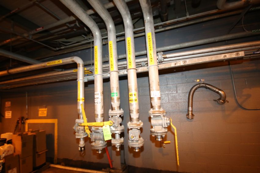 { Group of lots: 42, 45, 47, 60, 61, 62, 65, 66, 67, 68, 69, 70, 71, 72, 73, 73A, 73B, 75, 77, 79, 80, 81, 82, 83, 84, 85, 86, 97, 98, 99, 100, 101, 102, 103, 104, 105, 106, 107, 108, 109, 110, 111, 112, 113, 118, 119, 121, 134, 135, 136, 149, 151, 152, 164, 165, 200, 201, 202, 203, 212, 213, 214, 215, 216, 217, 218, 219, 220, 221, 222, 223, 246, 247, 248, 256, 257, 258, 260, 261, 263B, 267, 268, 270A, 271, 272, 273, 274, 275, 276, 277, 278, 279, 280, 281, 282, 283, 285, 286, 287, 288, 289, 290, 291, 292, 293, 294, 295, 296, 297, 301, 302, 303, 304, 307, 308, 309, 309A, 309B, 310, 310A, 314, 315, 316, 317, 319, 327, 328, 329, 344, 352, 355, 356, 357, 358, 361, 363A, 363B, 364, 443, 444, 445, 461, 462, 463, 464, 465, 466, 467, 468, 469, 610, 637, 638, 819, 819A, 820, 823, 824, 825, 826, 827, 828, 830, 831, 832, 833, 834, 835, 836, 837, 838, 839, 840, 841, 842, 843, 846, 846B, 847, 848, 849, 851, 856, 857, 858, 859, 861, 862, 863, 864, 865, 866, 870, 871, 873, 874, 875, 876, 877 } 100’s of Feet Installed S/S Process Piping Throughout 1st Floor Polymers Building includes from 1” Up to 4”, Most Pipe 304 Stainless Schedule 40 and Schedule 10 including Durco Manual and Actuated Valves, Flanges, Remaining Durco and Other Ball Valves and Remaining S/S Braided Line with Couplers (NOTE: Only includes S/S Process Pipe, Does Not include any Condulet, Wiring, Utilities, Lines or Piping and Fixtures (Located 1st Floor Polymers Building)