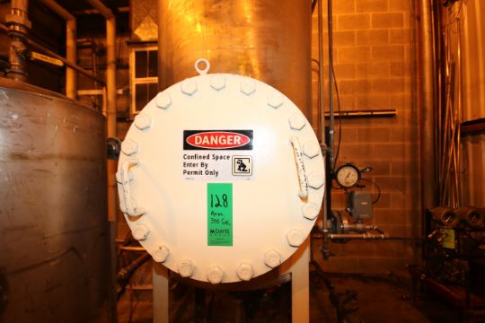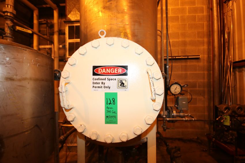 Aprox. 300 Gal. Dome-Top Dome Bottom Solvent Tank with Side Mounted Bolted Man Door, Foxboro Liquid Level Transmitter, Dimple Bottom (Dimensions 66’ H x 36” W), (NOTE: used in Cl. I Div. 1 Gp. D hazardous areas)