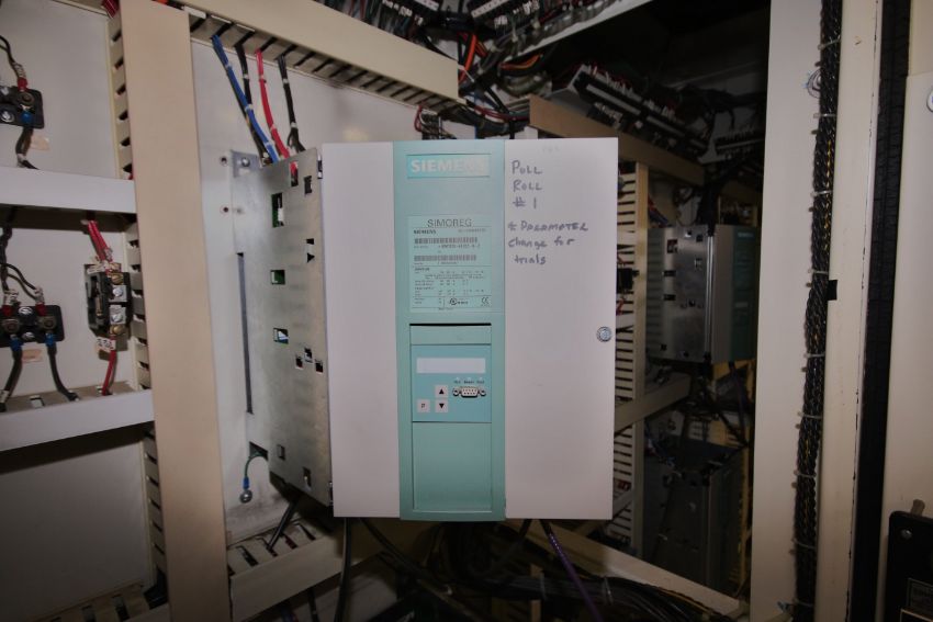 { Group of lots: 42, 45, 47, 60, 61, 62, 65, 66, 67, 68, 69, 70, 71, 72, 73, 73A, 73B, 75, 77, 79, 80, 81, 82, 83, 84, 85, 86, 97, 98, 99, 100, 101, 102, 103, 104, 105, 106, 107, 108, 109, 110, 111, 112, 113, 118, 119, 121, 134, 135, 136, 149, 151, 152, 164, 165, 200, 201, 202, 203, 212, 213, 214, 215, 216, 217, 218, 219, 220, 221, 222, 223, 246, 247, 248, 256, 257, 258, 260, 261, 263B, 267, 268, 270A, 271, 272, 273, 274, 275, 276, 277, 278, 279, 280, 281, 282, 283, 285, 286, 287, 288, 289, 290, 291, 292, 293, 294, 295, 296, 297, 301, 302, 303, 304, 307, 308, 309, 309A, 309B, 310, 310A, 314, 315, 316, 317, 319, 327, 328, 329, 344, 352, 355, 356, 357, 358, 361, 363A, 363B, 364, 443, 444, 445, 461, 462, 463, 464, 465, 466, 467, 468, 469, 610, 637, 638, 819, 819A, 820, 823, 824, 825, 826, 827, 828, 830, 831, 832, 833, 834, 835, 836, 837, 838, 839, 840, 841, 842, 843, 846, 846B, 847, 848, 849, 851, 856, 857, 858, 859, 861, 862, 863, 864, 865, 866, 870, 871, 873, 874, 875, 876, 877 } Coater Area #1 Electro-Flyte Single Door Control Panel for #1 Pull Rolls and Die Back-Up Roll includes (2) Siemens DC/Converter Controllers, Model 1P-6RA7018-6FS22-0-Z, Siemens AC Drive, Order #1P 6SE7018-0EA51, Small Transformers and Relays (Located in Control Room) (NOTE: Wire and Condulet Not Included Outside Panel)