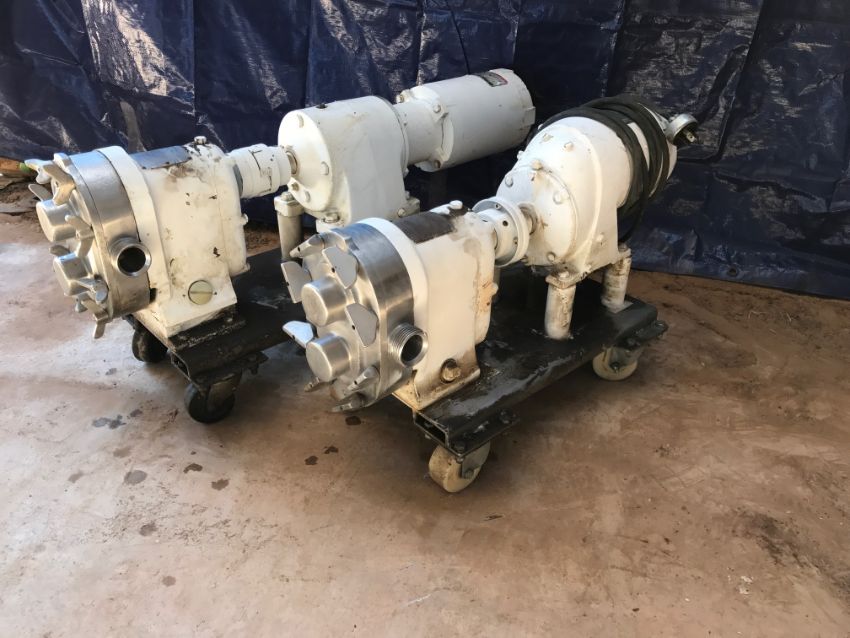 Waukesha Positive Displacement Pumps, Model DO35494SS, stainless steel heads, stainless steel impellers, sanitary product contact parts, 1 1/2” Threaded (Bevel Seat) Ports, driven by 2/3 h.p., 3 phase, 60 cycle, 230/460 volts, based mounted.(SOLD SUBJECT TO CONFIRMATION OF BID)***MANU***