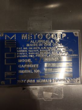 Meto Corp All S/S 12 ft. H Column Lift, Model M2310-10, S/N 6904, 150 kg Capacity includes Clamp and Unclamp Barrell Attachment (Located in Pittsburgh)***MBENMDG***