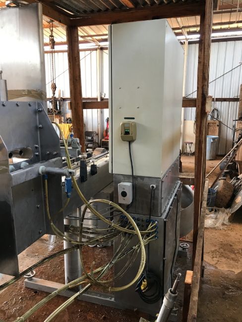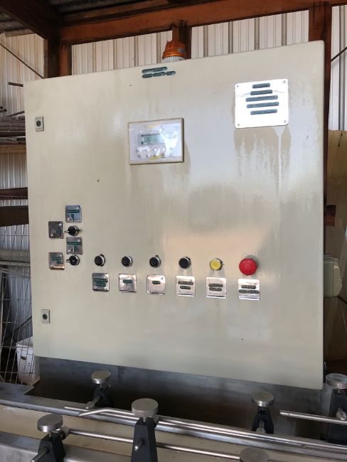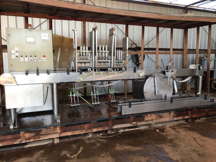 New/Never Installed Avamex (Avances Mexicanos) In-Line Positive Displacement Filler, Six (6) Stainless Steel Filling valves (adjustable height), Three (3) nitrogen Filler Valves, complete with Three (3) stainless steel product filler bowls (sanitary design) (Serial #’s 1056/1057/1058), complete with PLC Model Fisto, stainless steel empty bottle infeed conveyor with white neoprin flat belt driven by constant speed motor 1 h.p., stainless steel filled bottle discharge conveyor with white neoprin flat belt and stainless steel filled bottle accumulation table. This filler was purchased new and never installed for production. The original application was to fill the (sample) bottle with salsa (Located in Carrizo Springs, Texas) (SOLD SUBJECT TO CONFIRMATION OF BID)***MANU***
