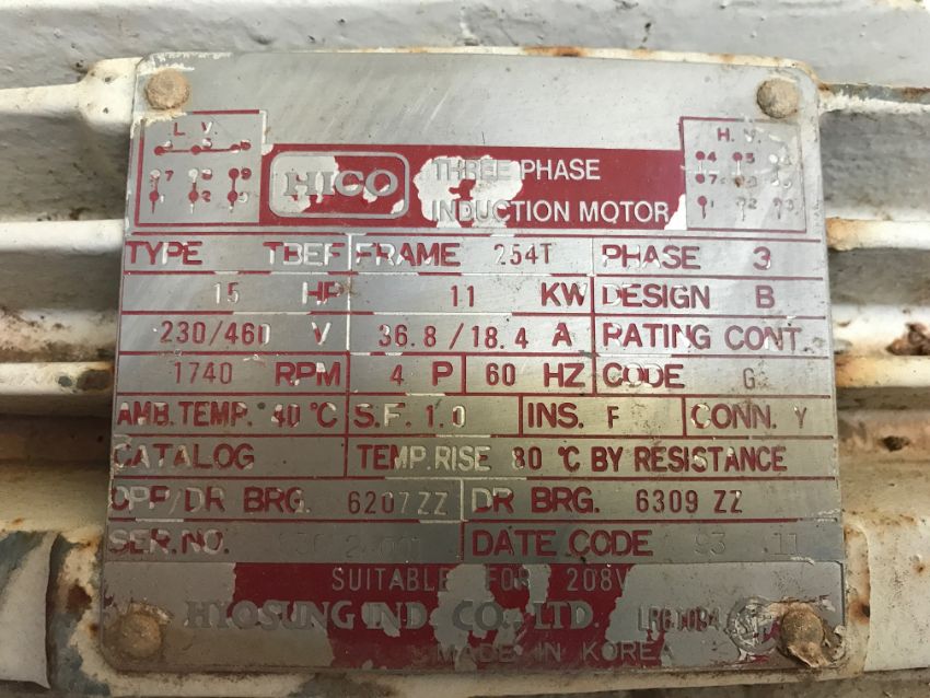 Fitzpatrick (Fitzmill) Comminuting Machine, Model D, stainless steel product hopper, stainless steel product discharge, painted mild steel frame, complete with HICO Three Phase Induction Motor, 15 h.p., 3 phase, 60 cycle, 230 volts.(Located in Carrizo Springs, Texas) (SOLD SUBJECT TO CONFIRMATION OF BID)***MANU***