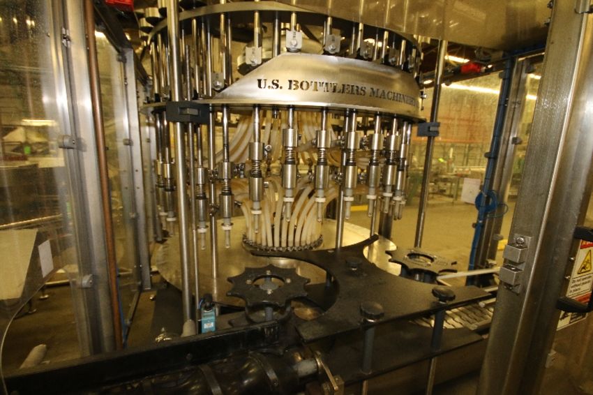 2011 U.S. Bottlers 36-Valve Piston Filler, M/N PG-36-54, S/N SS400, with Infeed/Outfeed Conveyor, Includes Spare Parts