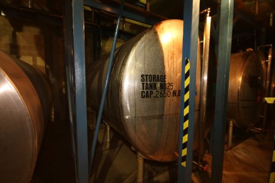 { Choice of lots: 54, 55, 56, 57, 58 } Perma-San 2,650 Gal. Horizontal S/S Tank, Single-Wall, M/N 2630-H, S/N 16798-1, Dims.: 78" Dia. x 144" L (Tank 25)