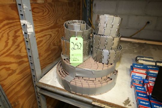 { Group of lots: 252, 253 } Aprox. 7 Rolls of Product Conveyor Chain, Includes (5) Rolls of S/S Product Coneyor Chain, (2) Other Rolls of Chain