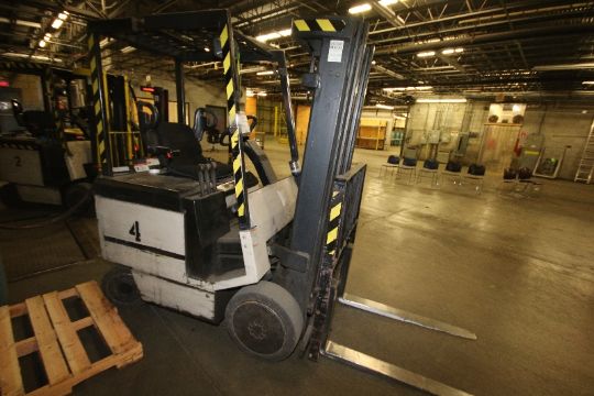 { Choice of lots: 225, 226 } Explosion Proof 3,700 lb. Electric Forklift, M/N 40FCTT-88, S/N 8A107432, with 36 V Battery, 3-Stage Mast, Includes Hobart 36 V Battery Charger